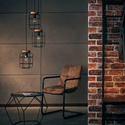 Brilliant Gwen Pendelleuchte Metall Holz Schwarz | 420mm - Geeignet für 3x E27