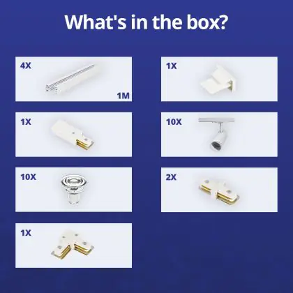 | Herstellername | Complete L shaped 1-Phase Track Set White incl. 10x Spot fixture + GU10 2700K 3W Dim – 2 x 2 meters | |