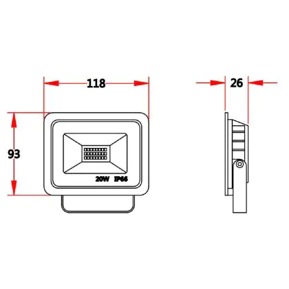 LED-Scheinwerfer 20W 2000lm 100D - 830 | IP66 - Symmetrisch