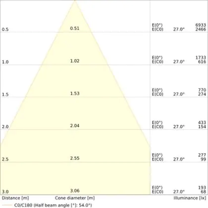 Der Abstrahlwinkel bezeichnet den Winkel, in dem das Licht aus der Lichtquelle ausgestrahlt wird. Er wird in Grad (D) angegeben. Je geringer die Gradzahl des Abstrahlwinkels ist, desto kleiner ist auch der Durchmesser des Lichtkegels, den die Lichtquelle produziert.