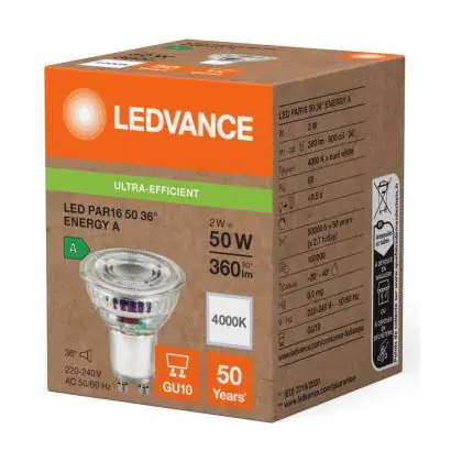 Ledvance LED PAR16 GU10 Reflektor 2W 360lm 36D - 840 | Ersatz Für 50W