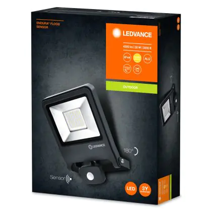 Ledvance LED-Scheinwerfer Endura Schwarz 50W 4500lm 100D - 830 | IP44 - Bewegungs- und Lichtsensor - Symmetrisch