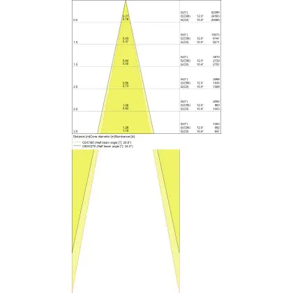 Der Abstrahlwinkel bezeichnet den Winkel, in dem das Licht aus der Lichtquelle ausgestrahlt wird. Er wird in Grad (D) angegeben. Je geringer die Gradzahl des Abstrahlwinkels ist, desto kleiner ist auch der Durchmesser des Lichtkegels, den die Lichtquelle produziert.