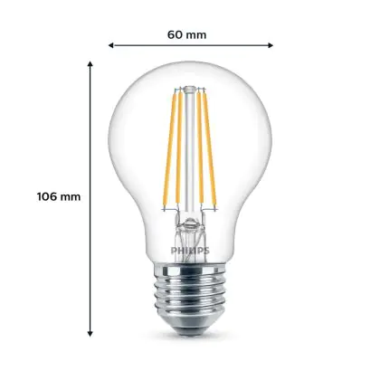 Mehrfachpackung 2x Philips Glühbirne LED E27 Birne Fadenlampe Klar 7W 850lm - 840