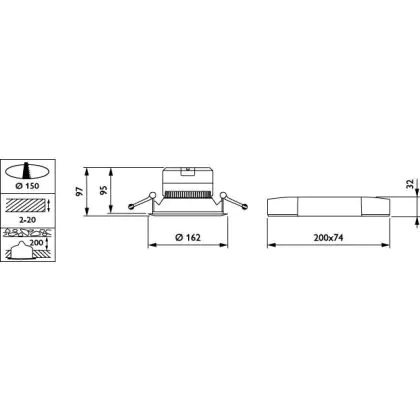 Der Ausschnitt einer Leuchte unterscheidet sich von den Abmessungen der Leuchte selbst und bezeichnet speziell die Grösse der Öffnung in der Decke, die für die sichere Montage der Lichtquelle benötigt wird.