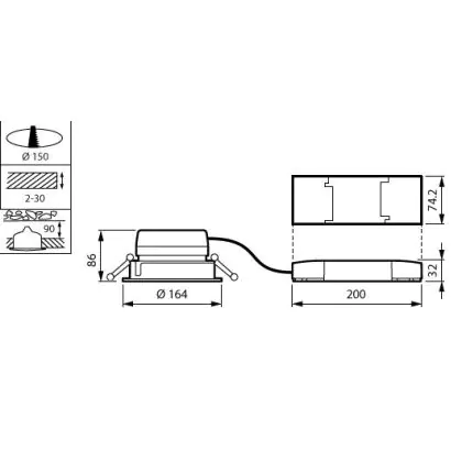 Der Ausschnitt einer Leuchte unterscheidet sich von den Abmessungen der Leuchte selbst und bezeichnet speziell die Grösse der Öffnung in der Decke, die für die sichere Montage der Lichtquelle benötigt wird.