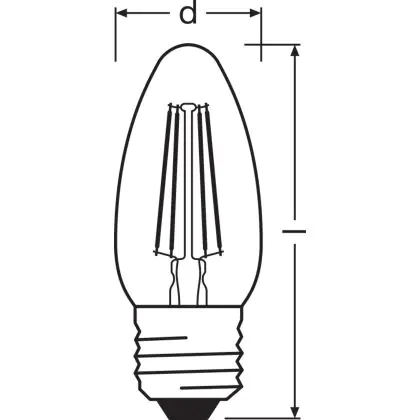 Description Ledvance Classic LED E27 Bougie Filament Claire 4W 470lm - 827- | Remplacement 40W