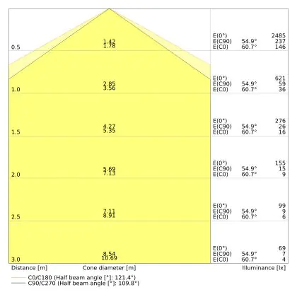 Le code couleur se compose de l'indice de rendu des couleurs (IRC) et de la température de couleur (Kelvin). Le premier chiffre indique le rendu des couleurs (1 = très mauvais rendu des couleurs, 9 = meilleure authenticité des couleurs). Le deuxième et troisième chiffre indiquent la température de la couleur. Exemple : Le code couleur "830" indique que la lampe a un bon rendu des couleurs (8) et une couleur de lumière blanche chaude (30 = 3000K). |