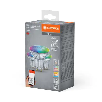 Ledvance Smart+ Wifi GU10 Spot 5W 350lm 45D - 827-865 Accordable Blanc | RGBW - Dimmable - Remplacement 50W