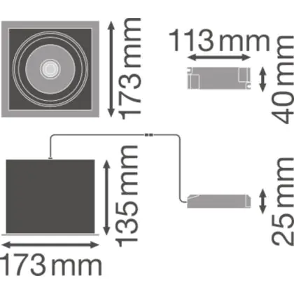 Description Ledvance Spot LED Carré Multi inclinable Noir-Blanc 30W 2700lm 38D - 840 Blanc Froid | Diamètre 164mm