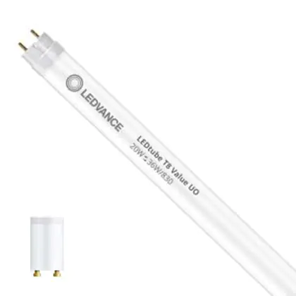Ce tube LED Ledvance Tube LED T8 Value (EM/Direct 230V) Ultra Output 20W 2160lm - 830 Blanc Chaud | 120cm - Équivalent 36W est l’un des produits les plus éconergétiques en remplacement des tubes T8 classiques. Avec ce tube LED vous êtes donc assuré de sa qualité. Avec une puissance de seulement 20 W, ce tube LED a la même intensité lumineuse qu’un tube classique qui consomme 36 W.