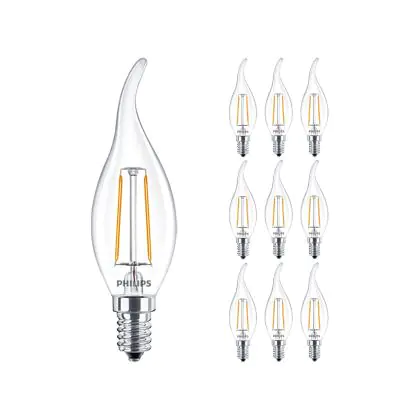 Lot 10x Philips Corepro LED Bougie E14 Bent-tip Filament Claire 2W 250lm - 827 | Remplacement 25W