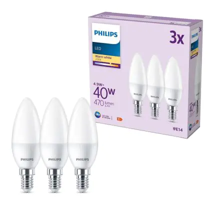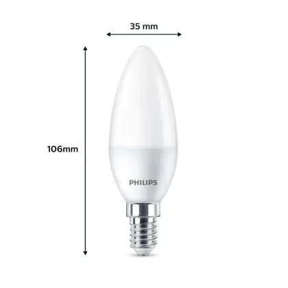 Cette ampoule Lot 3x Philips Ampoule LED E14 Bougie Dépolie 5W 470lm - 827 avec son efficacité lumineuse de lumen par watt vous permettra de profiter d’un éclairage de qualité. Avec sa durée de vie de 15000 heures, vous n’aurez pas à vous soucier de son remplacement avant quelques années.