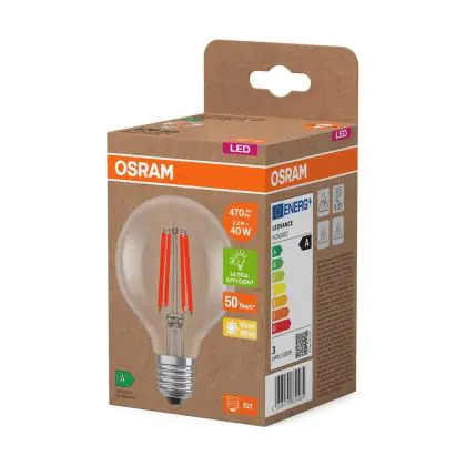 Osram LED Lamps E27 Globe Filament Claire 2.2W 470lm - 827 | Remplacement 40W