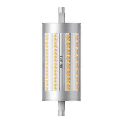 Philips Corepro LED Lineair R7s 118mm 17.5W 2460lm - 840 Blanc Froid | Dimmable - Équivalent 150W est une ampoule tubulaire linéaire à double extrémité. Ce type d’ampoule permet de délivrer une lumière homogène à 360° avec comme température de couleur 4000K - Blanc Froid. Cette ampoule LED R7s de chez Philips est la solution idéale pour le remplacement de vos anciennes ampoules halogènes. Cette ampoule LED n’a pas besoin de transformateur, elle fonctionne avec 230V et peut se connecter directement sur le secteur électrique.