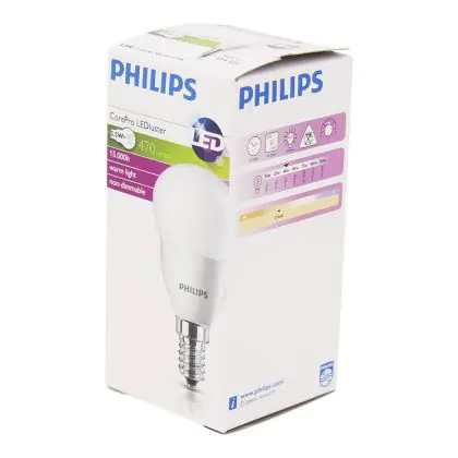 Cette ampoule Philips Corepro LED Lustre E14 Boule Dépolie 5W 470lm - 827 Blanc Très Chaud | Équivalent 40W est l’alternative idéale pour la remplacement de votre ampoule classique de 40 W. La technologie LED intégrée vous offrira de nombreux avantages. Les ampoules à incandescence traditionnelles ont une durée de vie limitée. Cette alternative LED vous permettra de profiter d’un éclairage durable et fiable.