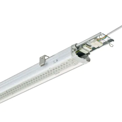 La réglette LED, Philips Réglette LED Étanche Pacific WT490C 51W 8000lm - 840 | 120cm - 3x Câblage Traversant - Dali Dimmable est conçue pour remplacer les réglettes TL-D traditionnelles et permettant d’économiser jusqu’à 50% d’énergie. Très souvent utilisé pour l’éclairage d’entrepôts, d’usines, de parking et d’autres grands espaces extérieurs. Très simple d’installation, cette réglette de 120cm peut se fixer au plafond et au mur et projette 4000K - Blanc Froid, comme couleur de lumière. La Philips Réglette LED Étanche Pacific WT490C 51W 8000lm - 840 | 120cm - 3x Câblage Traversant - Dali Dimmable dispose d’un indice de protection IP66 à l’eau et la poussière et d’une résistance aux chocs IK08.