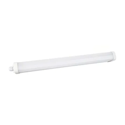La réglette LED, Réglette LED Étanche Eco V2.0 20W 2500lm - 840 | 60cm - Câblage Traversant (3x1.5mm2) est conçue pour remplacer les réglettes TL-D traditionnelles et permettant d’économiser jusqu’à 50% d’énergie. Très souvent utilisé pour l’éclairage d’entrepôts, d’usines, de parking et d’autres grands espaces extérieurs. Très simple d’installation, cette réglette de 60cm peut se fixer au plafond et au mur et projette 4000K - Blanc Froid, comme couleur de lumière. La Réglette LED Étanche Eco V2.0 20W 2500lm - 840 | 60cm - Câblage Traversant (3x1.5mm2) dispose d’un indice de protection IP65 à l’eau et la poussière et d’une résistance aux chocs IK10.